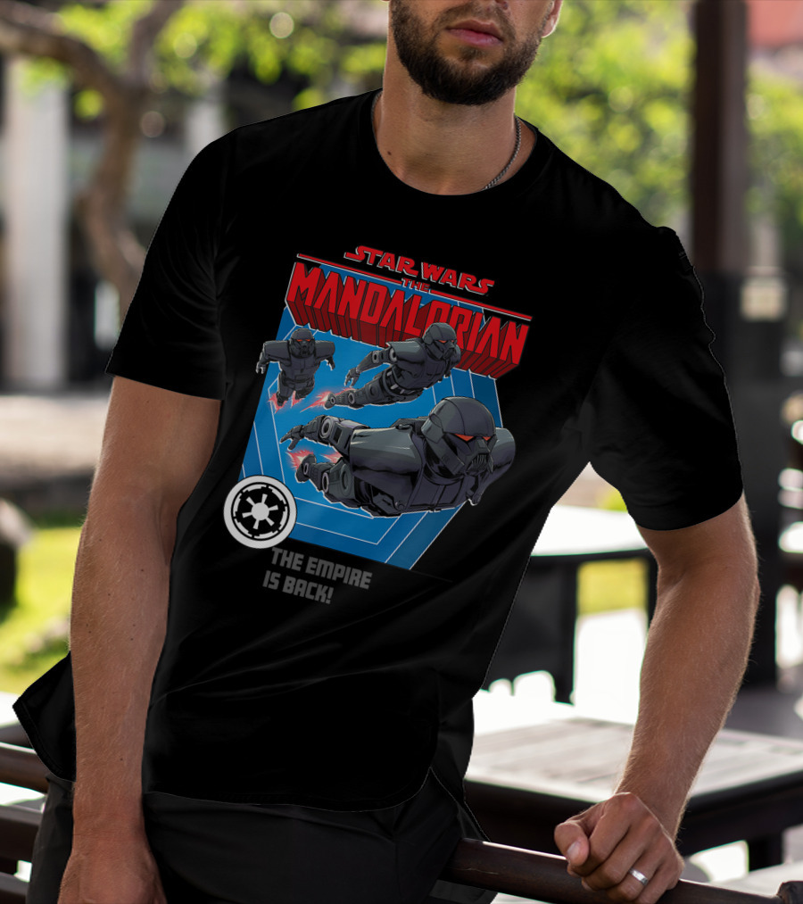 The Star Wars The Mandalorian The Empire Is Back Bounty Hunter Stormtroopers is a cotton shirt designed for regular, everyday wear. It is made from 100% pre-shrunk ring-spun cotton and can be worn on its own or layered under other clothing.