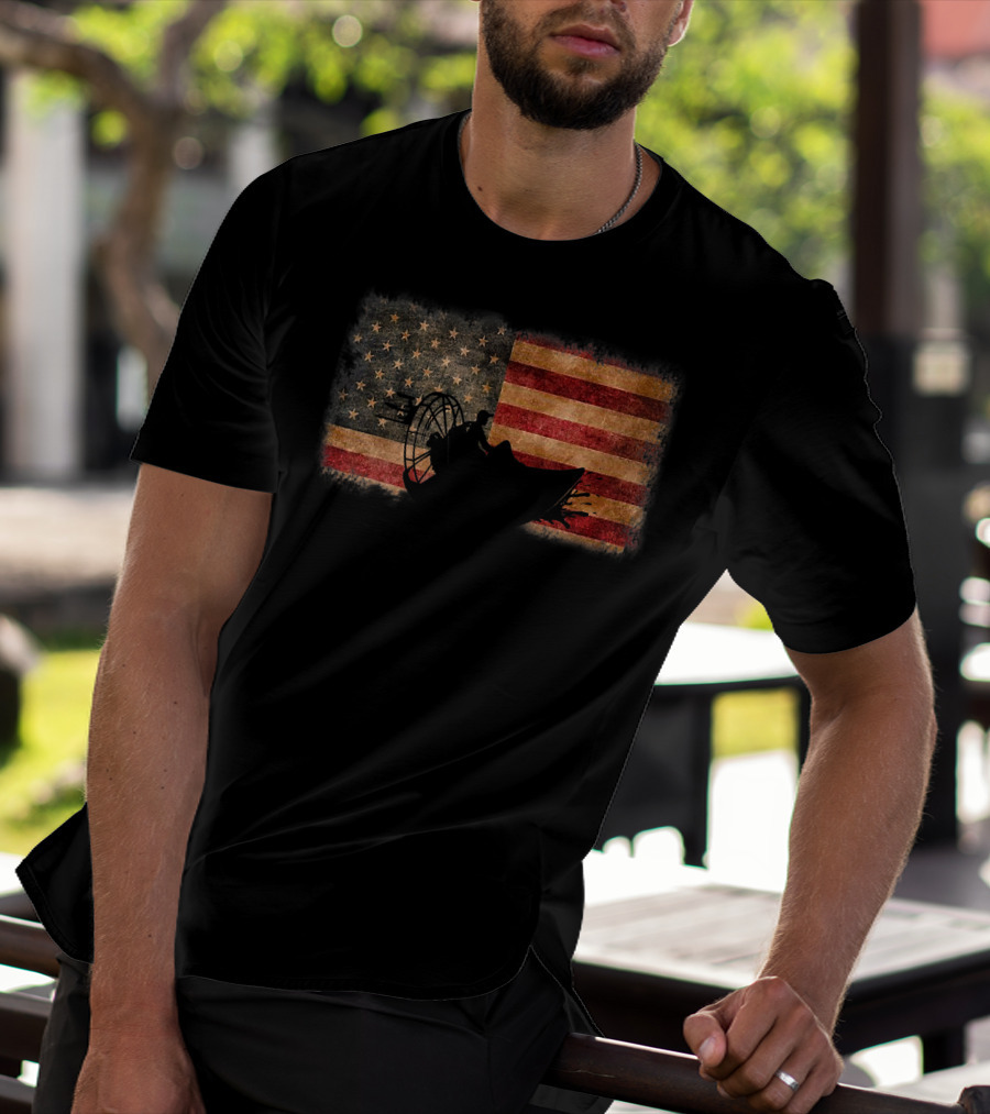 American Flag Airboat Racing Silhouette Over Rustic America T-Shirt