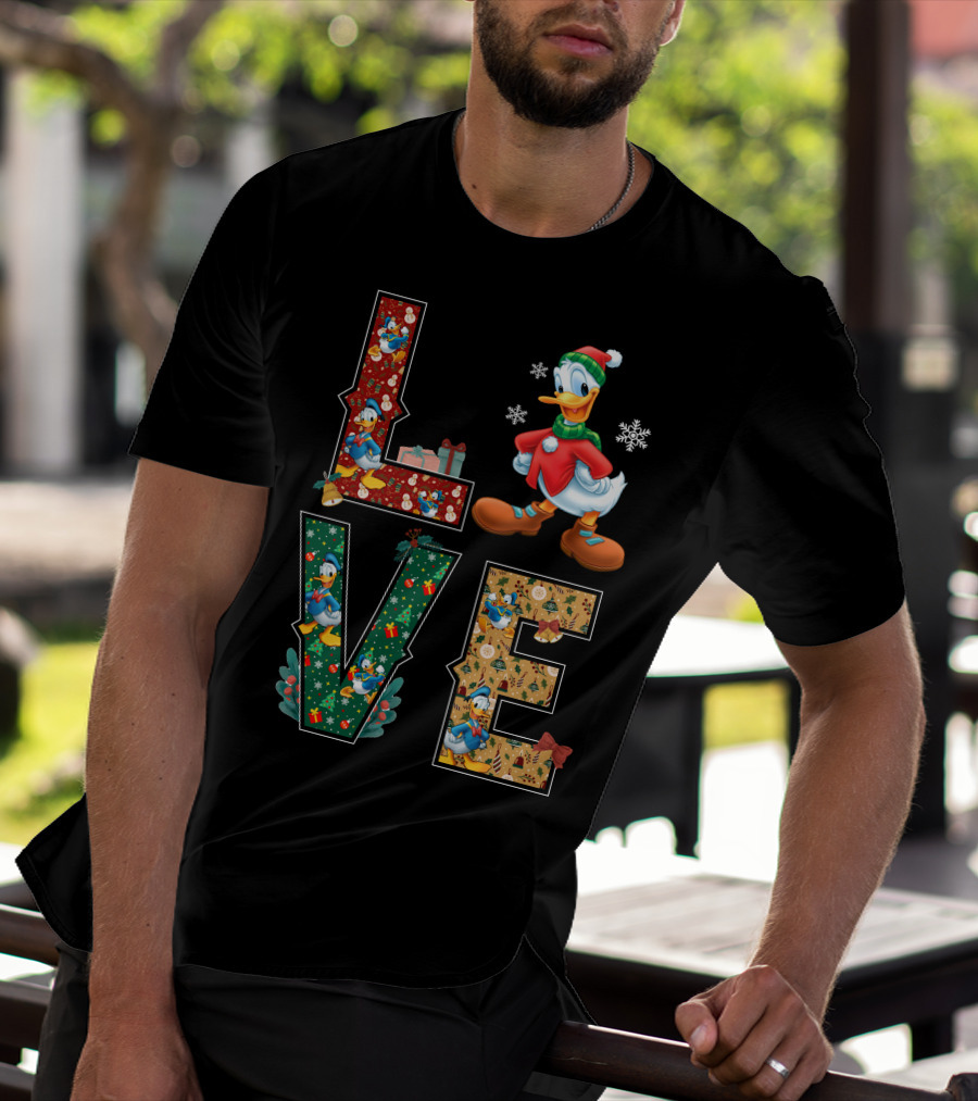 Donald Duck Christmas Love Snowflakes Present Bow Holiday T-Shirt