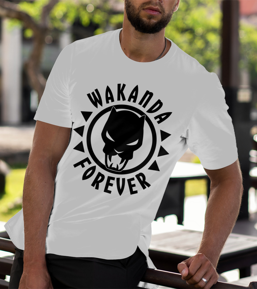 The Wakanda Forever Black Panther Circle Panther is a cotton shirt designed for regular, everyday wear. It is made from 100% pre-shrunk ring-spun cotton and can be worn on its own or layered under other clothing.