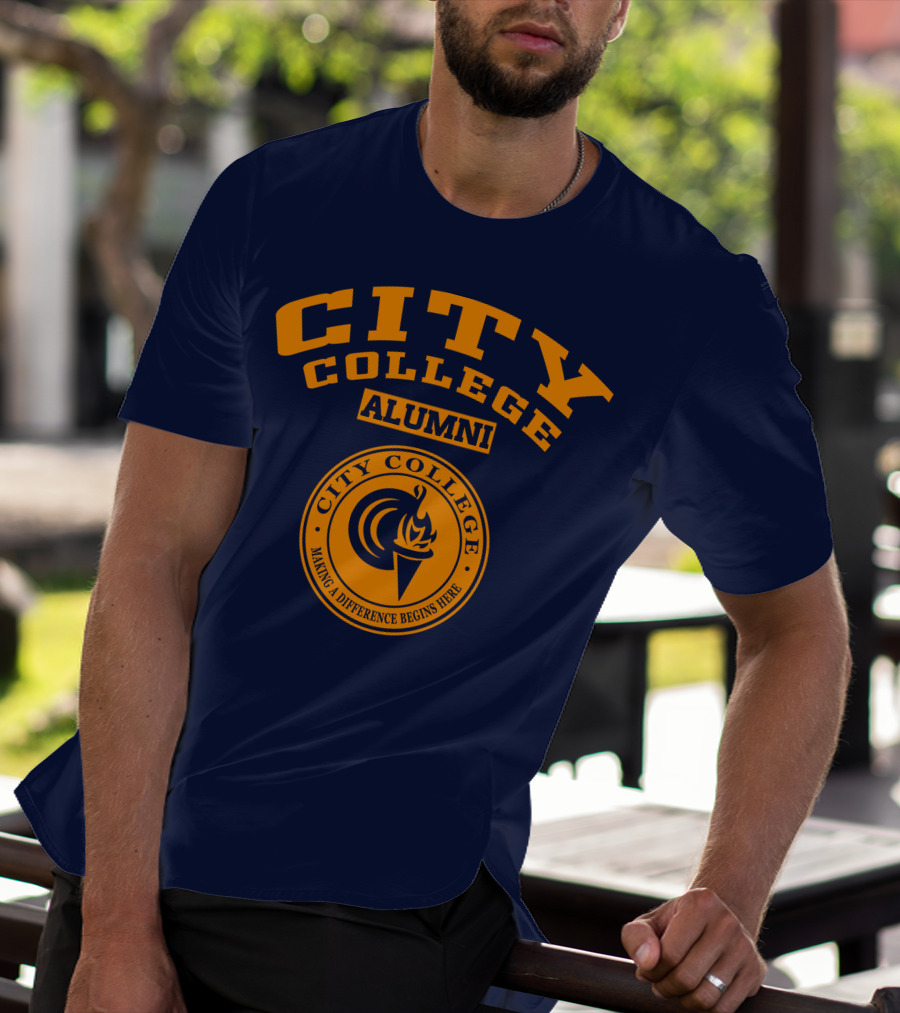 The City College Alumni Making a Difference Begins Here is a cotton shirt designed for regular, everyday wear. It is made from 100% pre-shrunk ring-spun cotton and can be worn on its own or layered under other clothing.