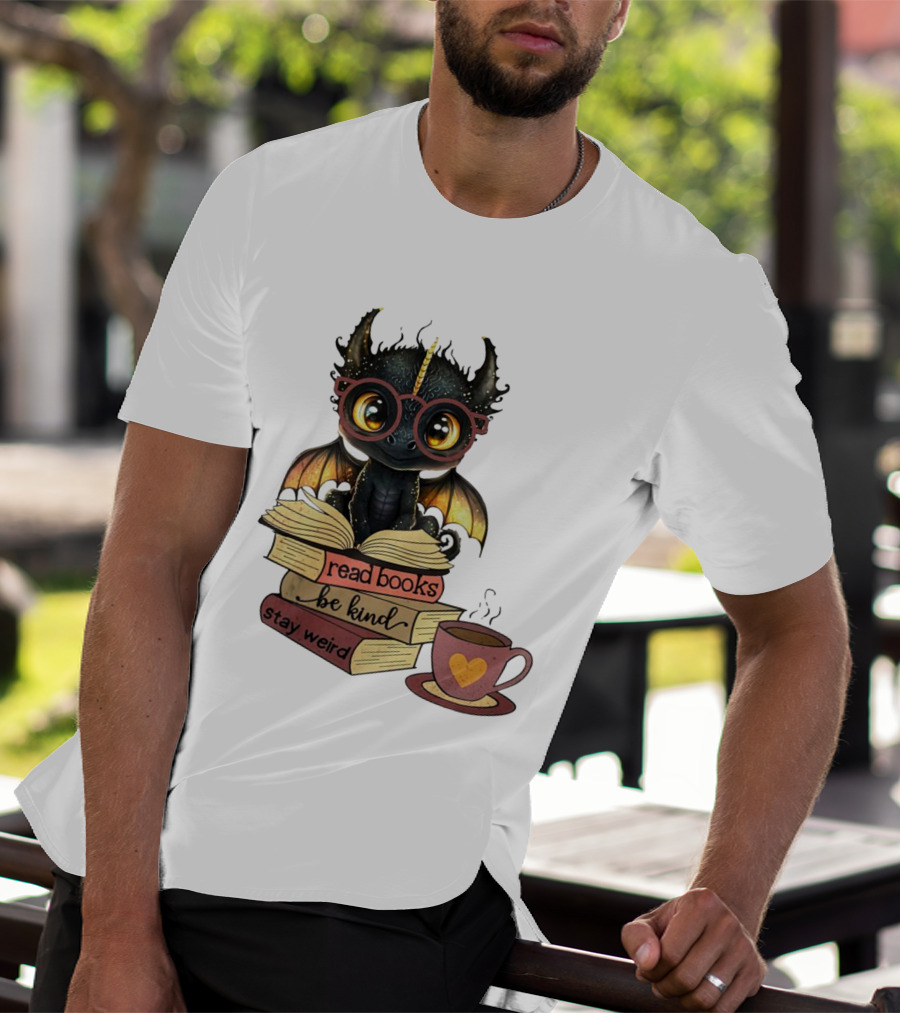 The Cute Dragon Read Books Be Kind Stay Weird Coffee Lover is a cotton shirt designed for regular, everyday wear. It is made from 100% pre-shrunk ring-spun cotton and can be worn on its own or layered under other clothing.