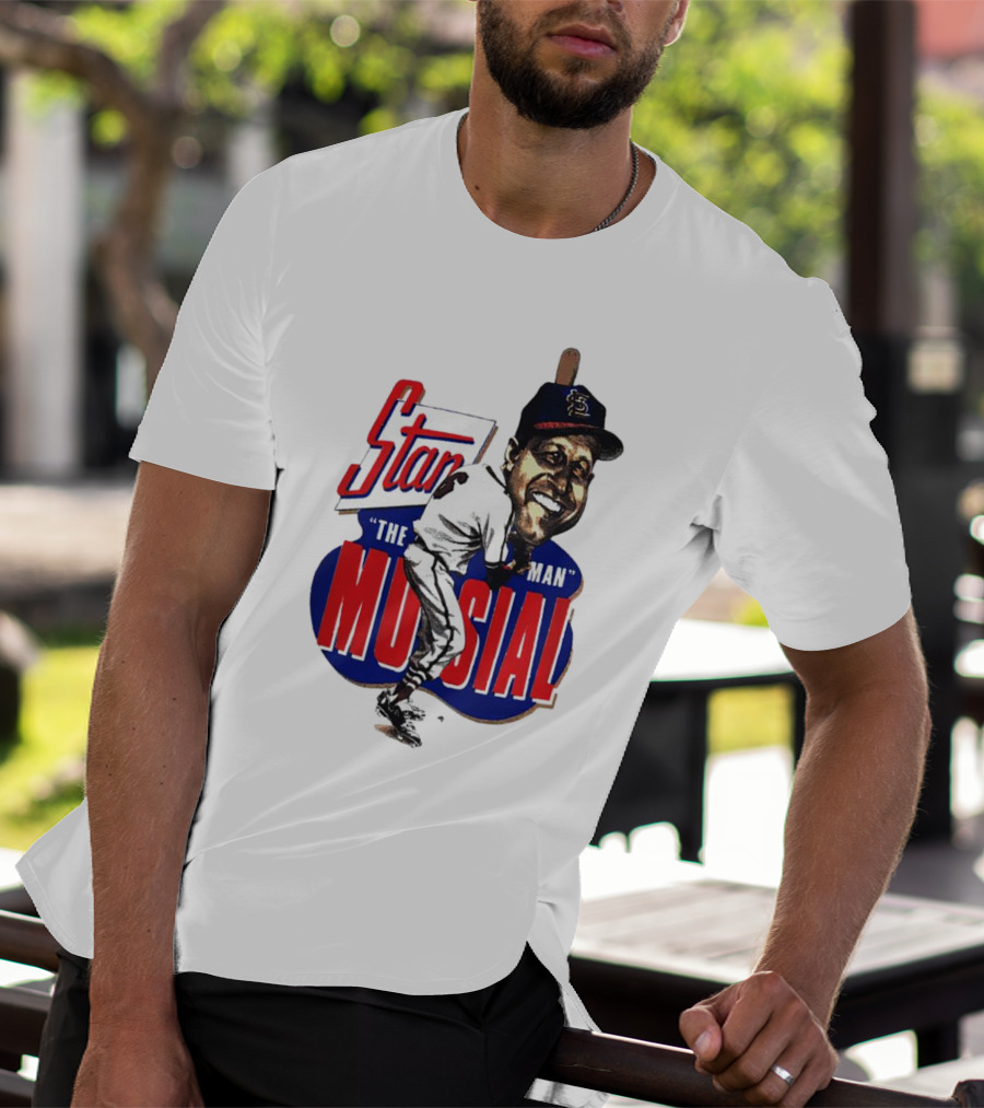 The Stan Musial The Man St. Louis Cardinals Caricature is a cotton shirt designed for regular, everyday wear. It is made from 100% pre-shrunk ring-spun cotton and can be worn on its own or layered under other clothing.