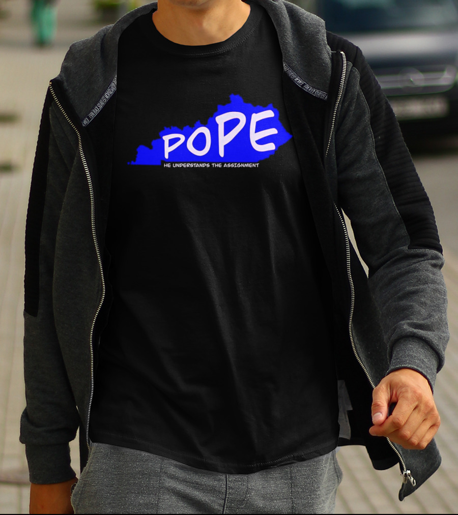 Pope He Understands The Assignment Kentucky Map Blue Text T-Shirt