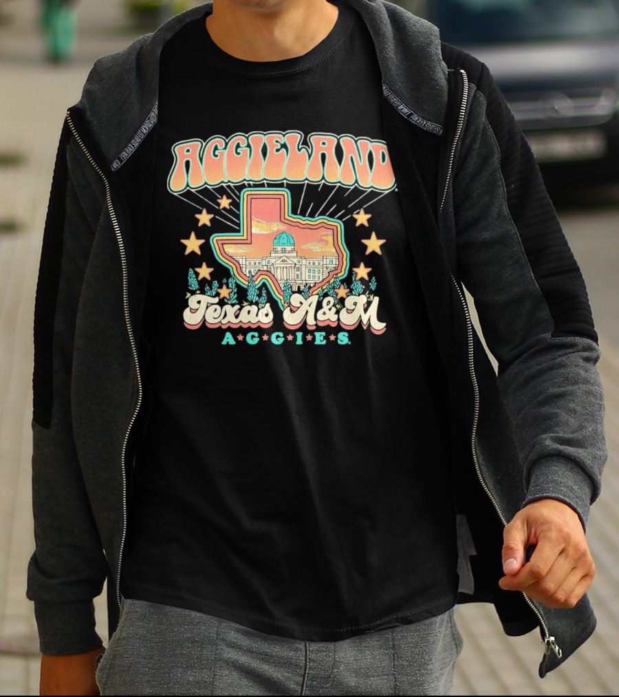 The Aggieland Texas A&M Aggies Fiesta with Texas Outline and Stars offers unmatched comfort and durability for everyday use. Made with 100% pre-shrunk ring-spun cotton, this tee is perfect for casual wear or under jacket