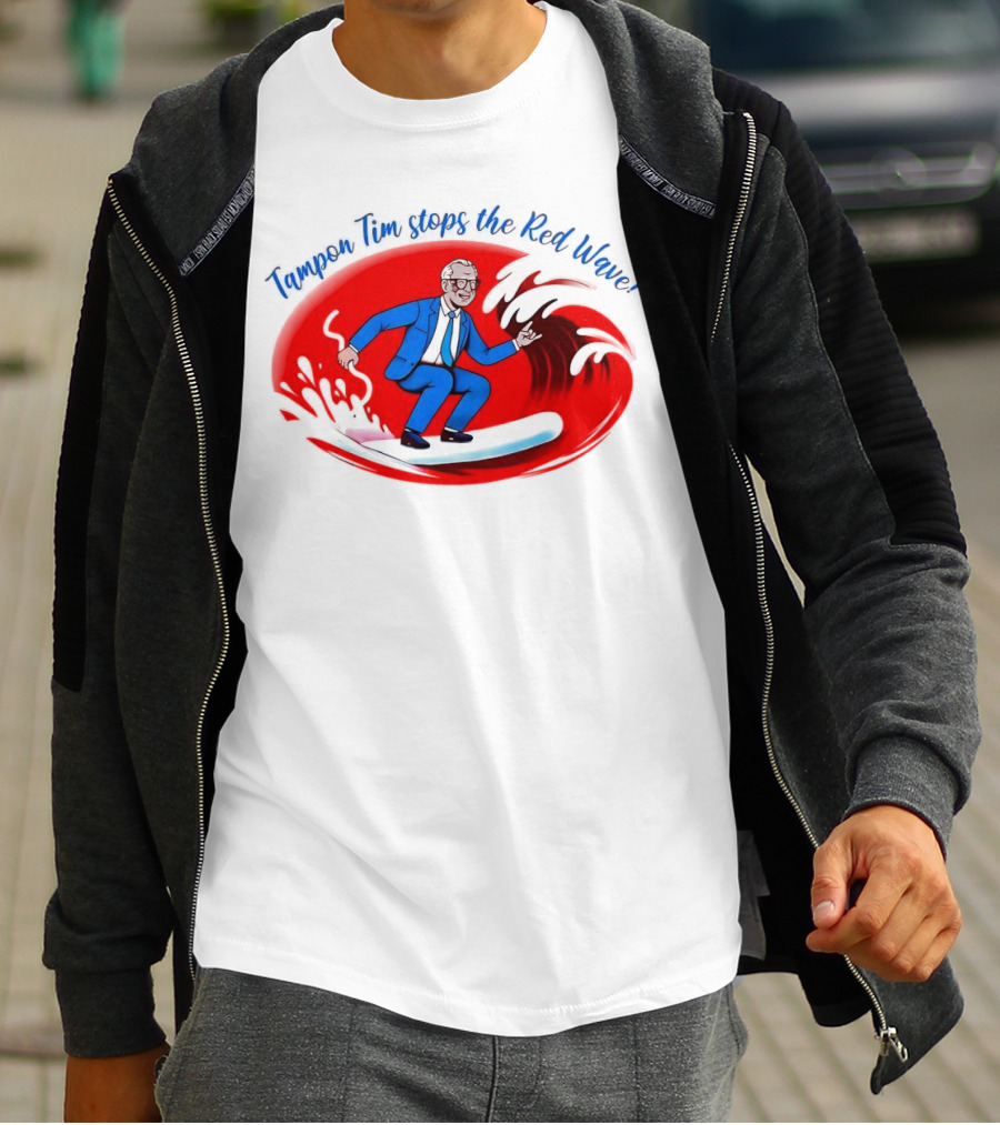 Tampon Tim Stops The Red Wave Surfing Cartoon T-Shirt