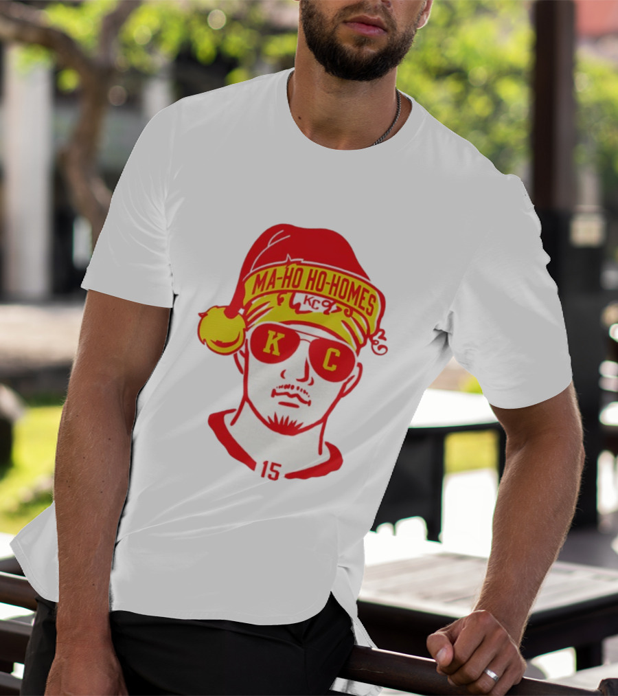 The Ma-Ho-Ho-Homes KC Santa Hat Football 15 is a cotton shirt designed for regular, everyday wear. It is made from 100% pre-shrunk ring-spun cotton and can be worn on its own or layered under other clothing.