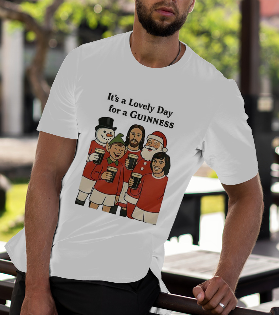 It's A Lovely Day For A Guinness Manchester United Christmas With Festive Characters T-Shirt