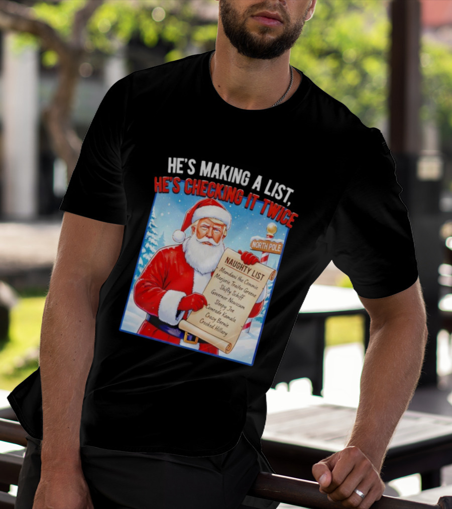 He's Making A List He's Checking It Twice Naughty List Santa Trump T-Shirt