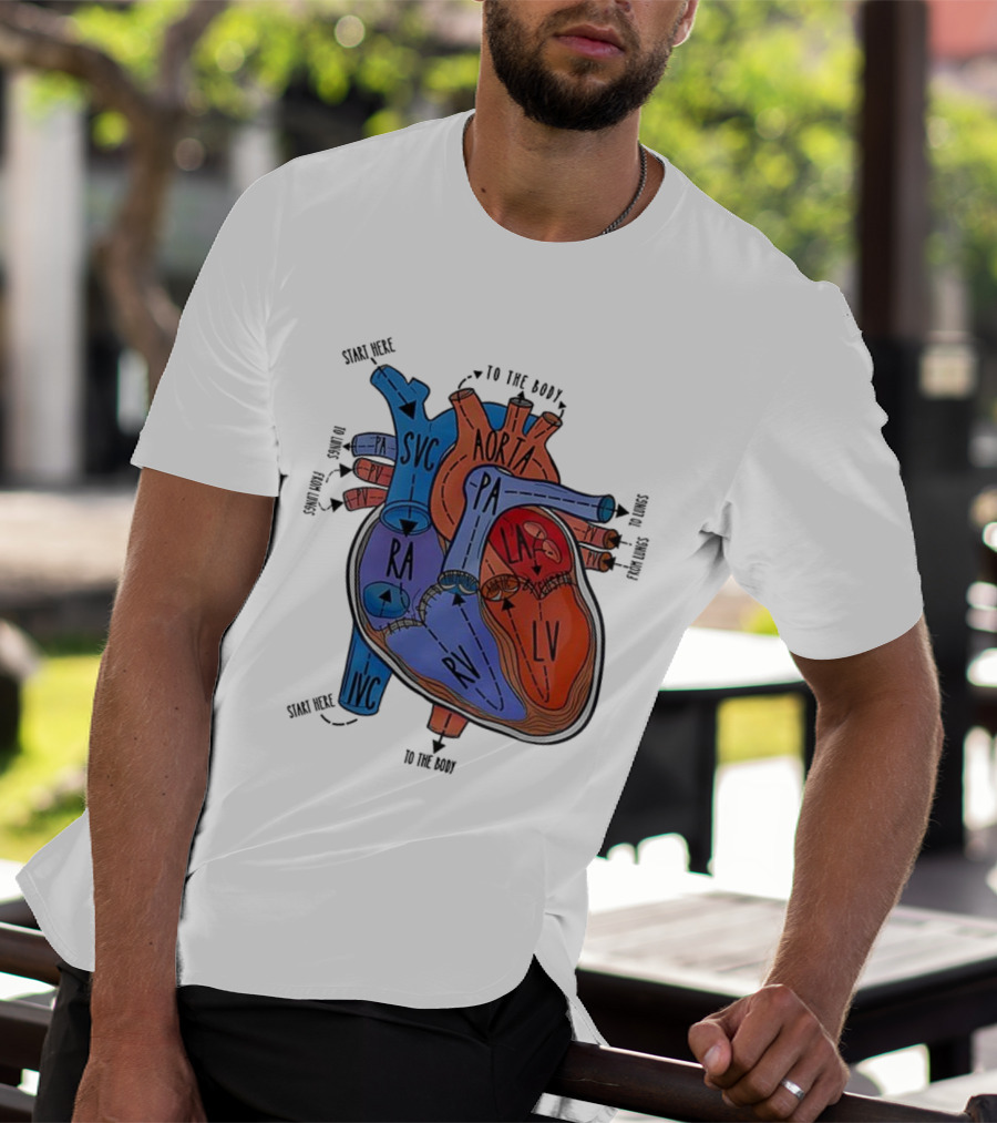 Heart Anatomy Blood Flow SVC RA RV IVC Aorta PA PV LA LV T-Shirt