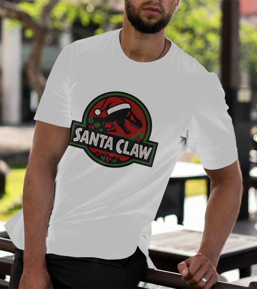 Santa Claw Christmas Dinosaur Jurassic Park Santa Hat Holiday T-Shirt