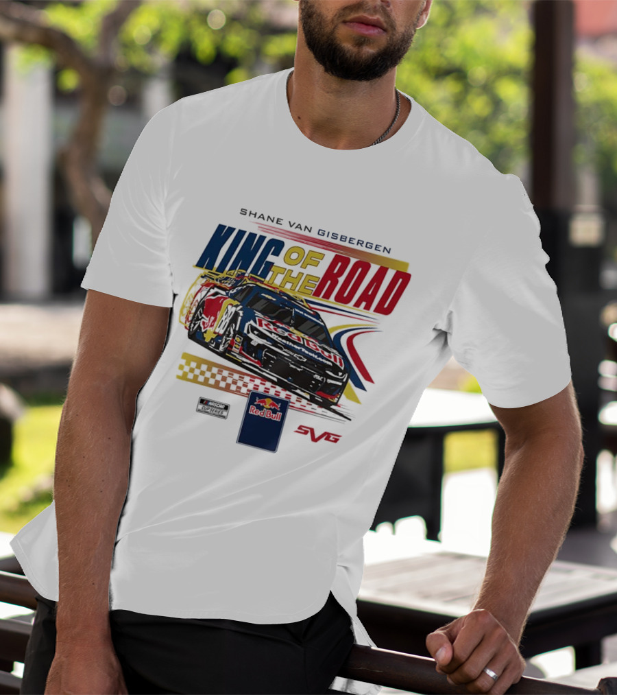 The Shane van Gisbergen King of the Road Red Bull Sonoma Raceway Victory Trackhouse Racing 88 is a cotton shirt designed for regular, everyday wear. It is made from 100% pre-shrunk ring-spun cotton and can be worn on its own or layered under other clothing.