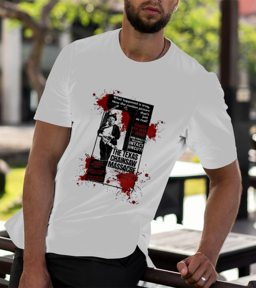 The Banned for Over 7 Years The Texas Chainsaw Massacre America's Most Bizarre Crime is a cotton shirt designed for regular, everyday wear. It is made from 100% pre-shrunk ring-spun cotton and can be worn on its own or layered under other clothing.