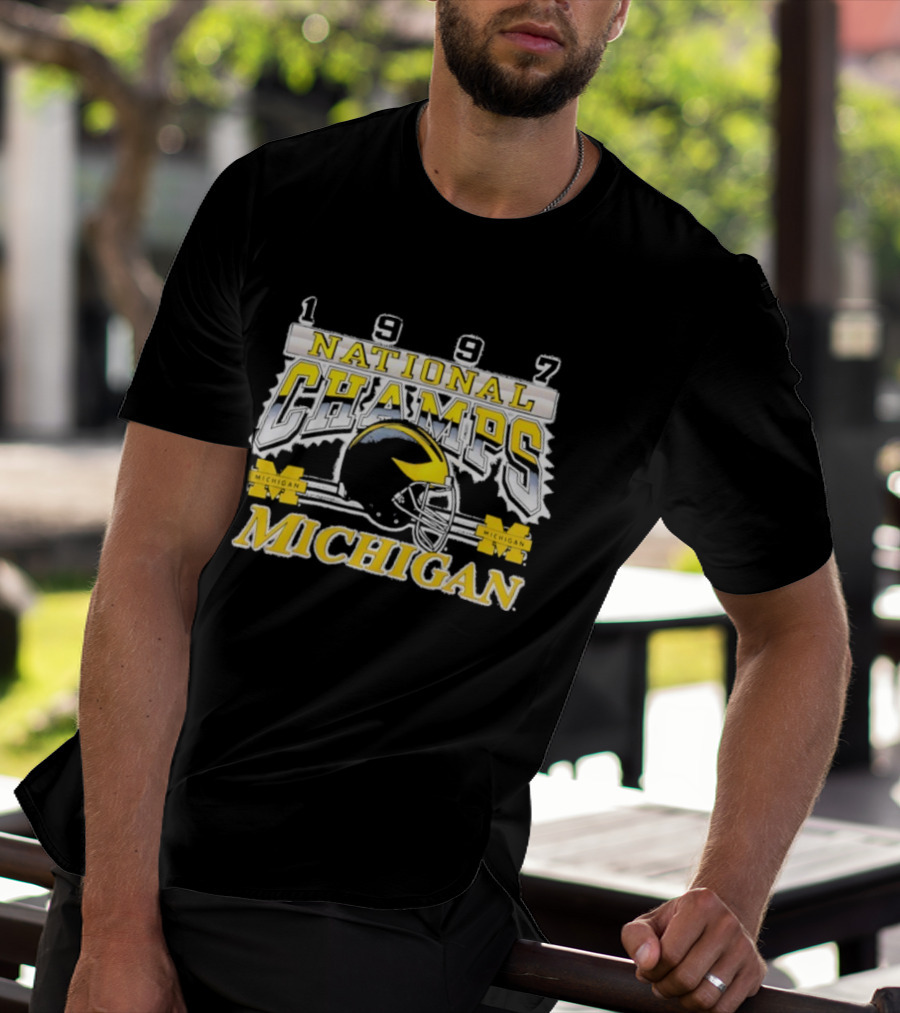 1997 Michigan National Champs Wolverines Football Helmet Vintage T-Shirt