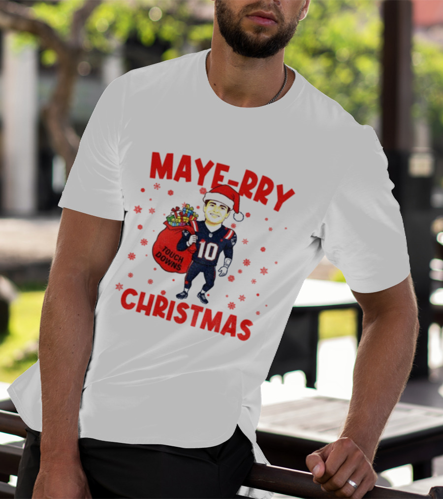 Maye-rry Christmas Drake Maye Santa Hat Touchdowns T-Shirt