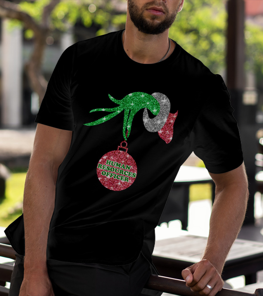 Grinch Hand Glittering Human Resources Officer Ornament T-Shirt