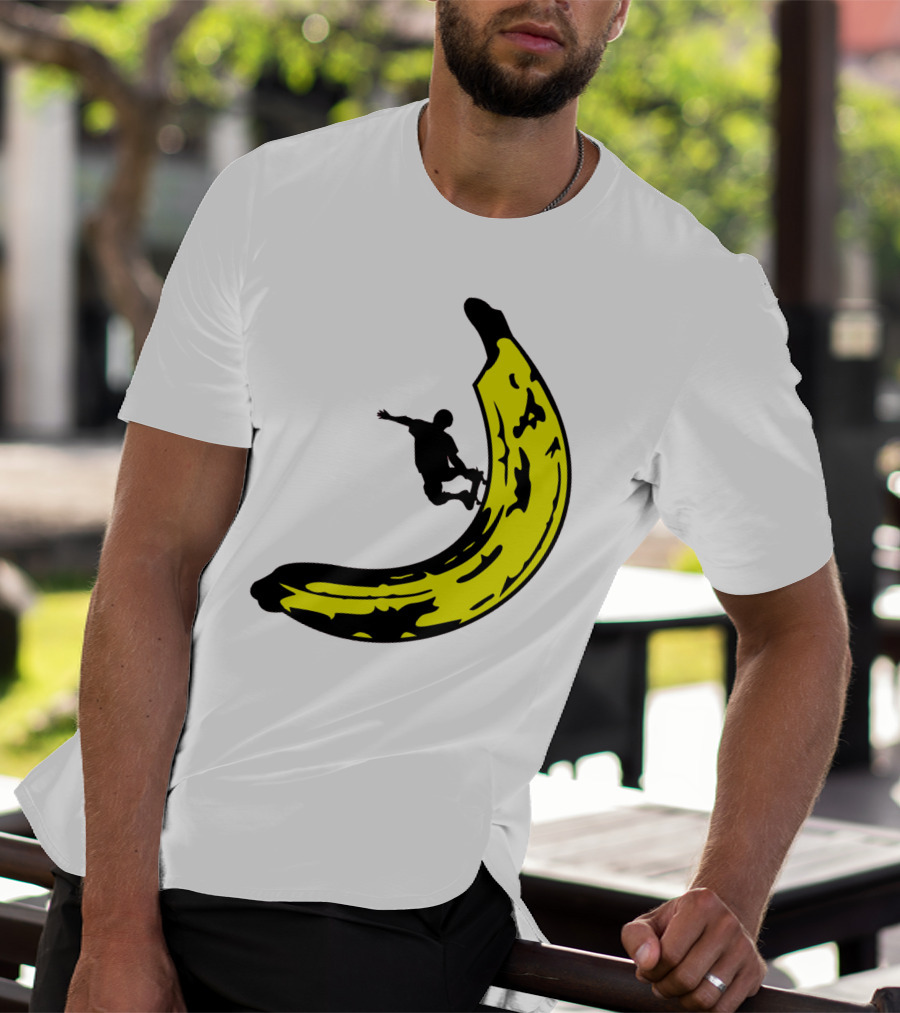 The Banana Shaped Skateboard Ramp with Silhouette Skater Jumping is a cotton shirt designed for regular, everyday wear. It is made from 100% pre-shrunk ring-spun cotton and can be worn on its own or layered under other clothing.