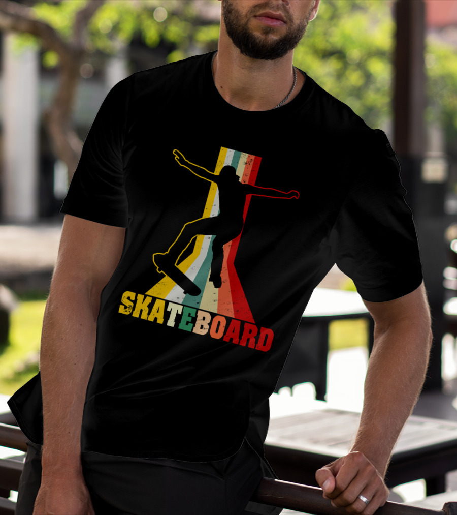 Retro Skateboard Silhouette With Vintage Color Stripes T-Shirt