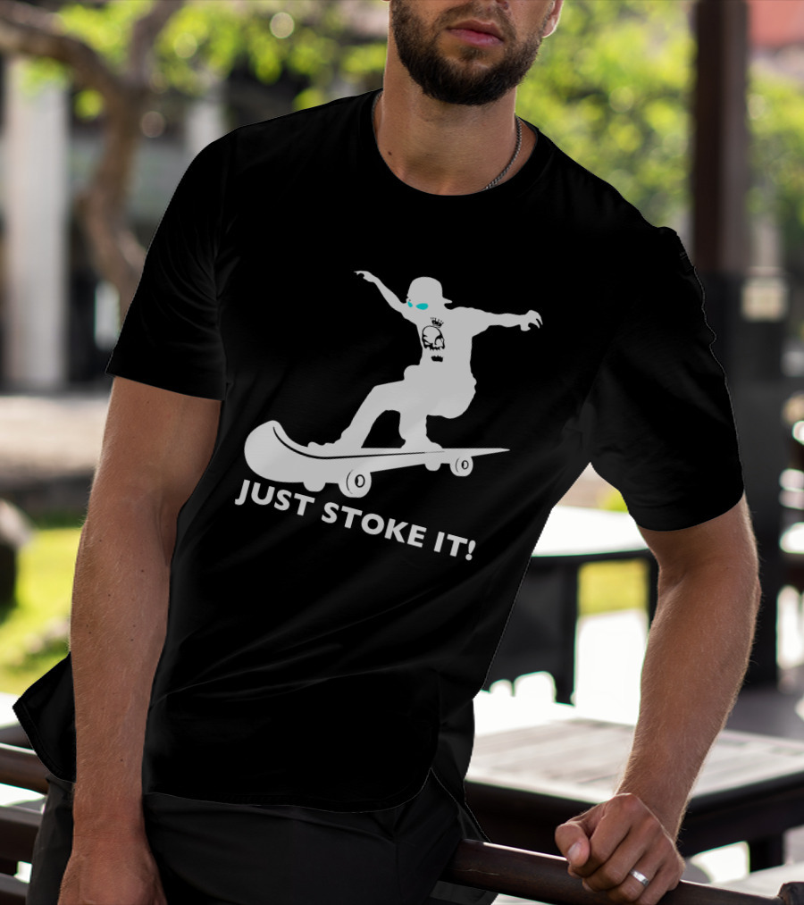 JUST STOKE IT Skateboarding Silhouette Skull T-Shirt