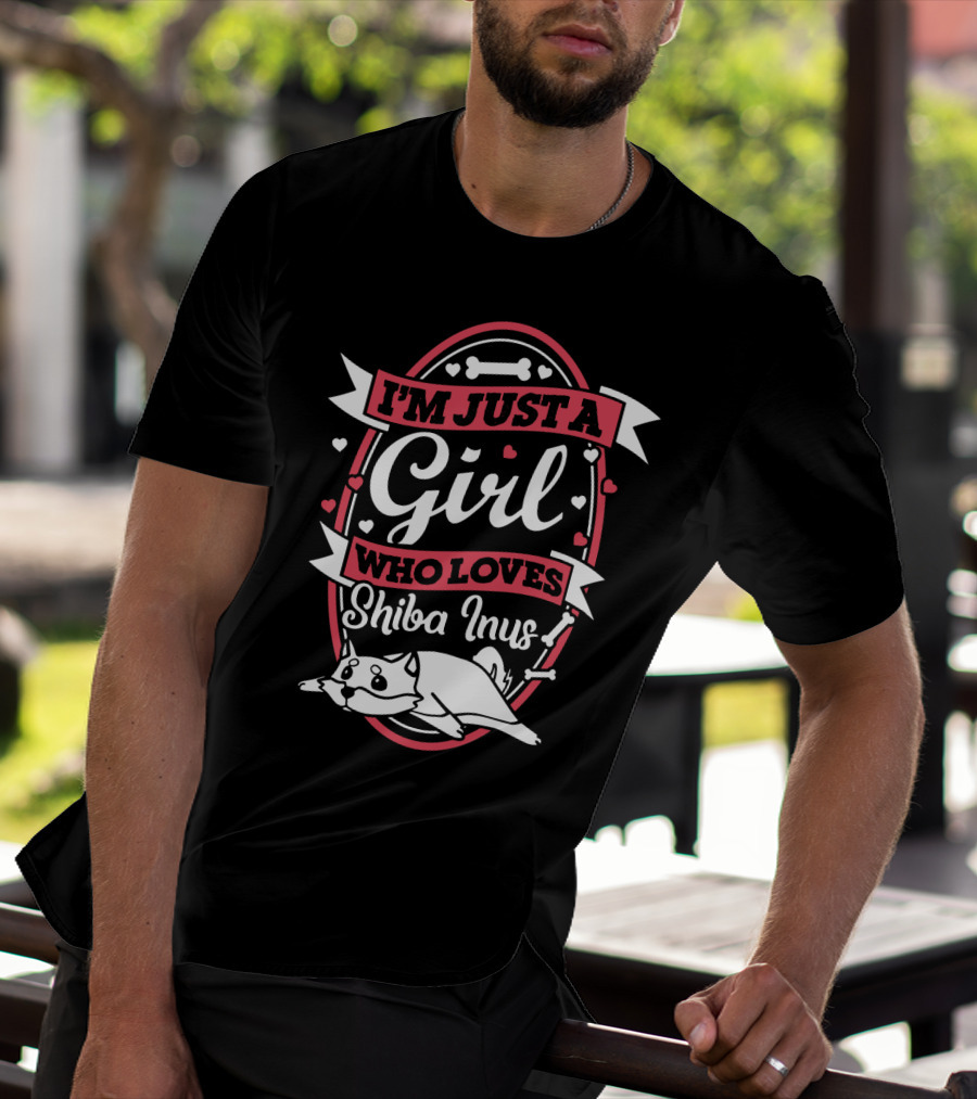 I'm Just A Girl Who Loves Shiba Inus With Cute Dog And Hearts T-Shirt