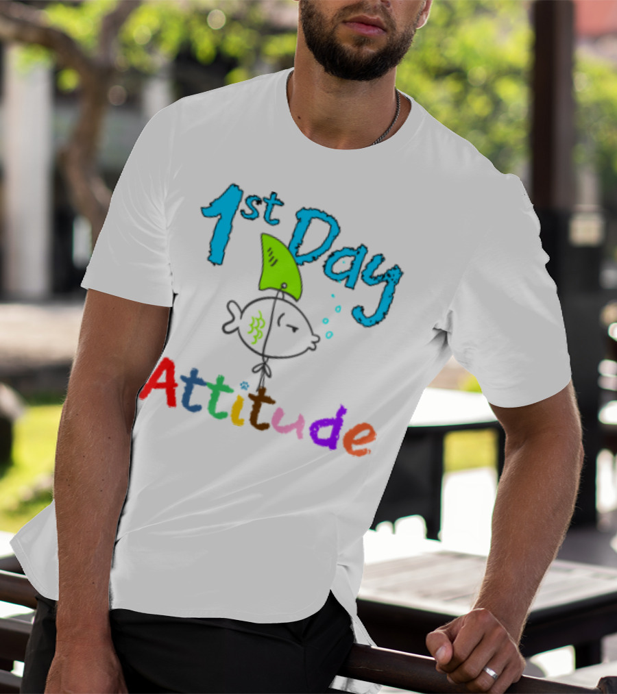 The 1st Day Attitude with Cartoon Fish is a cotton shirt designed for regular, everyday wear. It is made from 100% pre-shrunk ring-spun cotton and can be worn on its own or layered under other clothing.