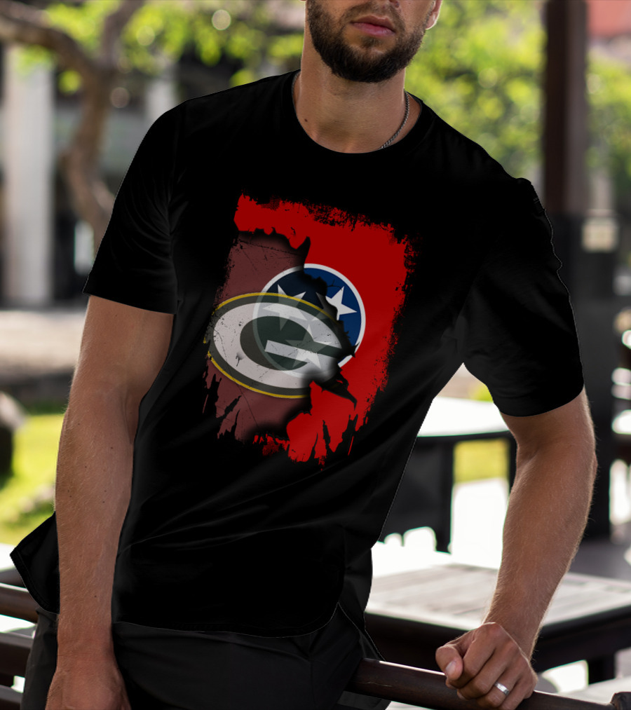 Together Tennessee With Green Bay Packers Logo Over Tennessee Flag T-Shirt