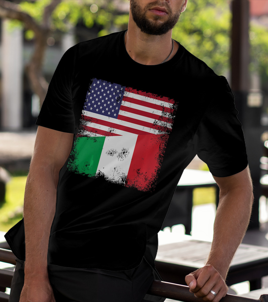 Half Italian Flag Vintage Italy U.S. American Grunge T-Shirt