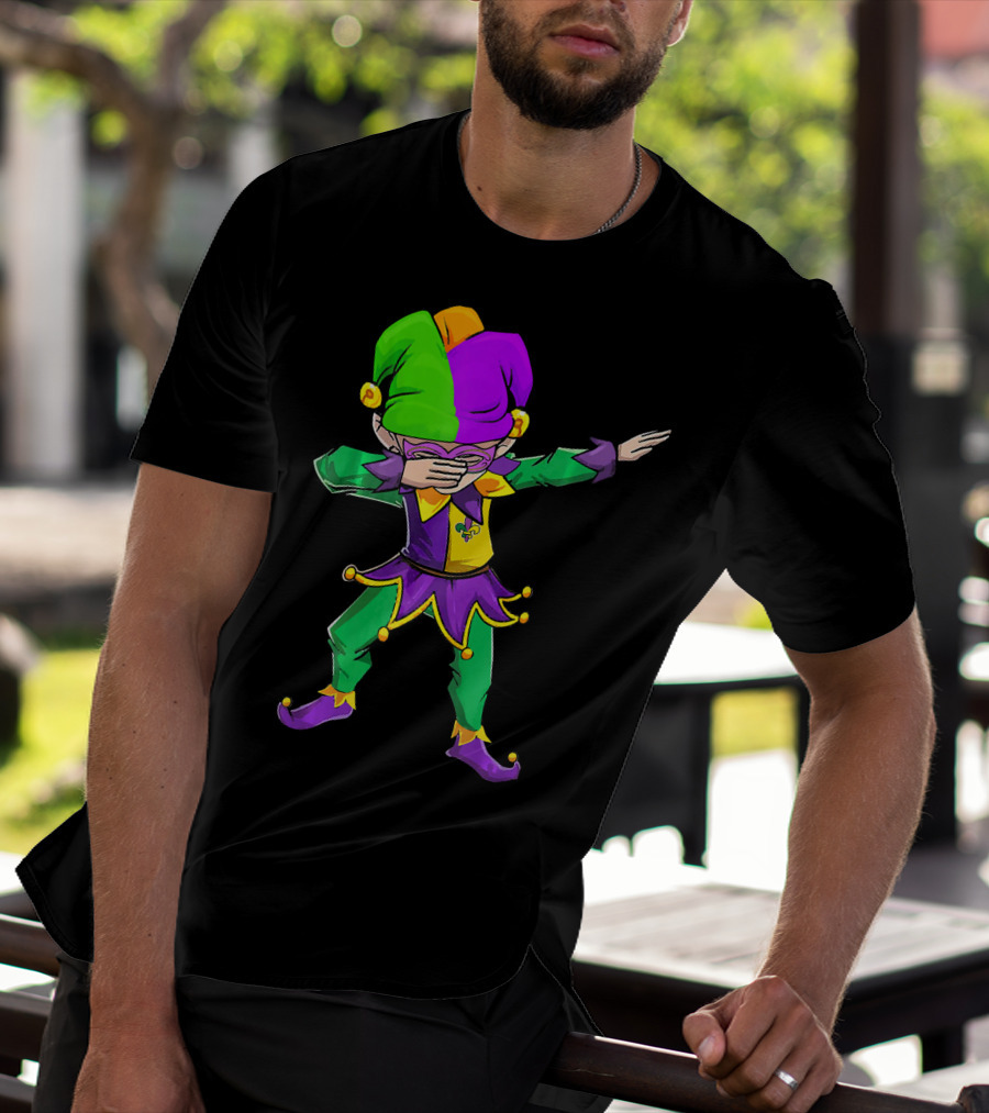 Mardi Gras Funny Dabbing Jester In Purple Green And Gold T-Shirt