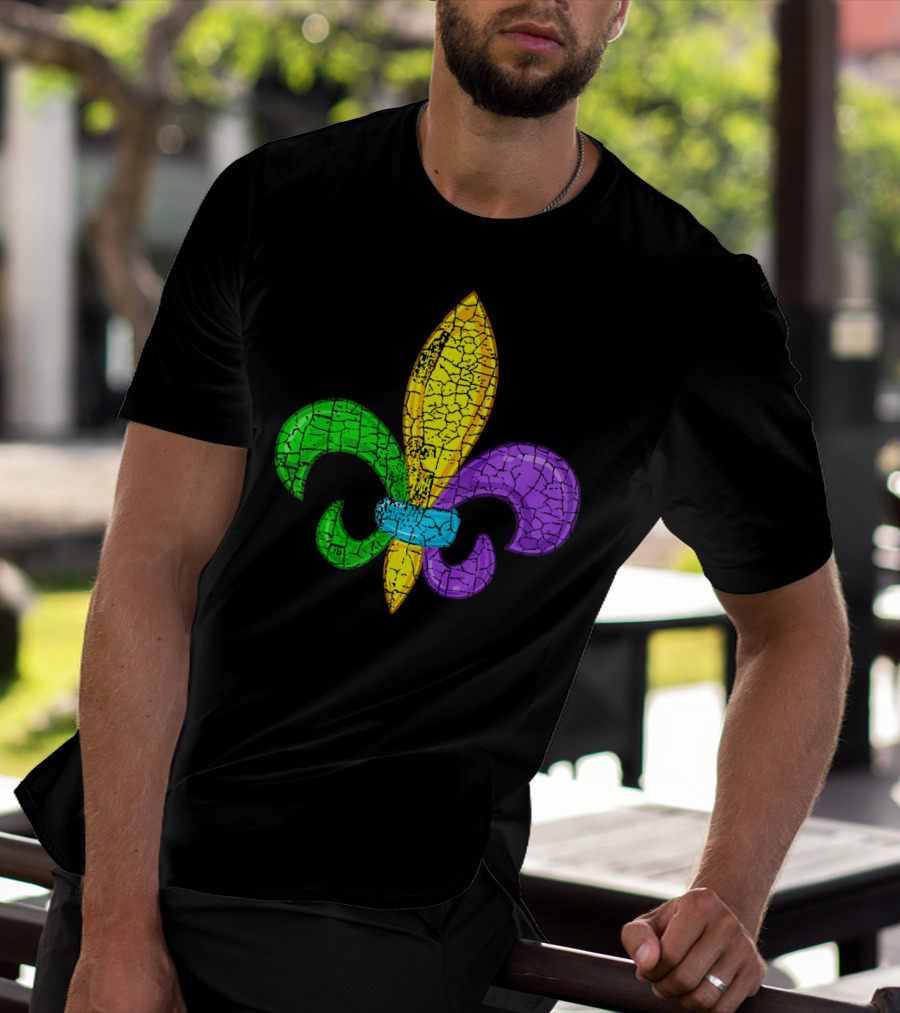 Fleur De Lis Mardi Gras Cute Fat Tuesday Cracked Texture T-Shirt