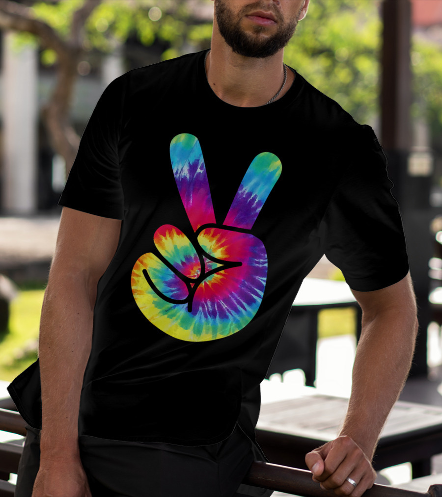Groovy Tie Dye Peace Sign Two Finger Gesture T-Shirt