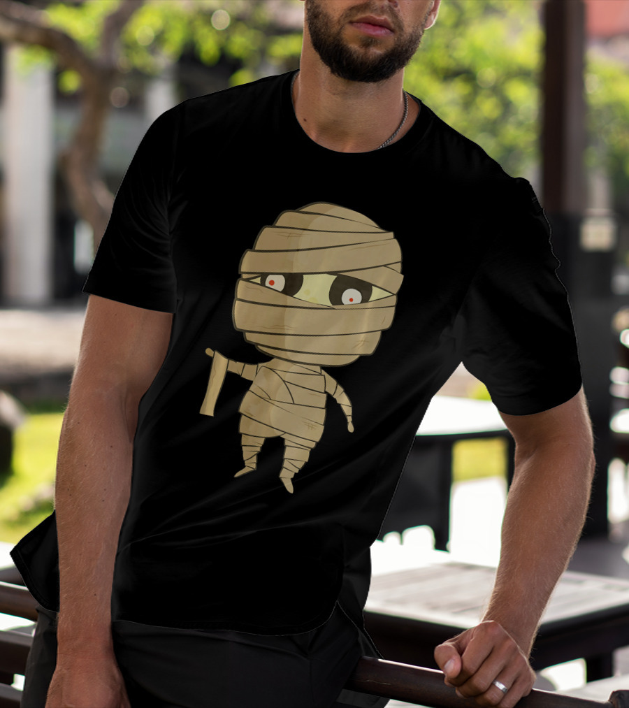 The Mummy Halloween Cute Character is a cotton shirt designed for regular, everyday wear. It is made from 100% pre-shrunk ring-spun cotton and can be worn on its own or layered under other clothing.